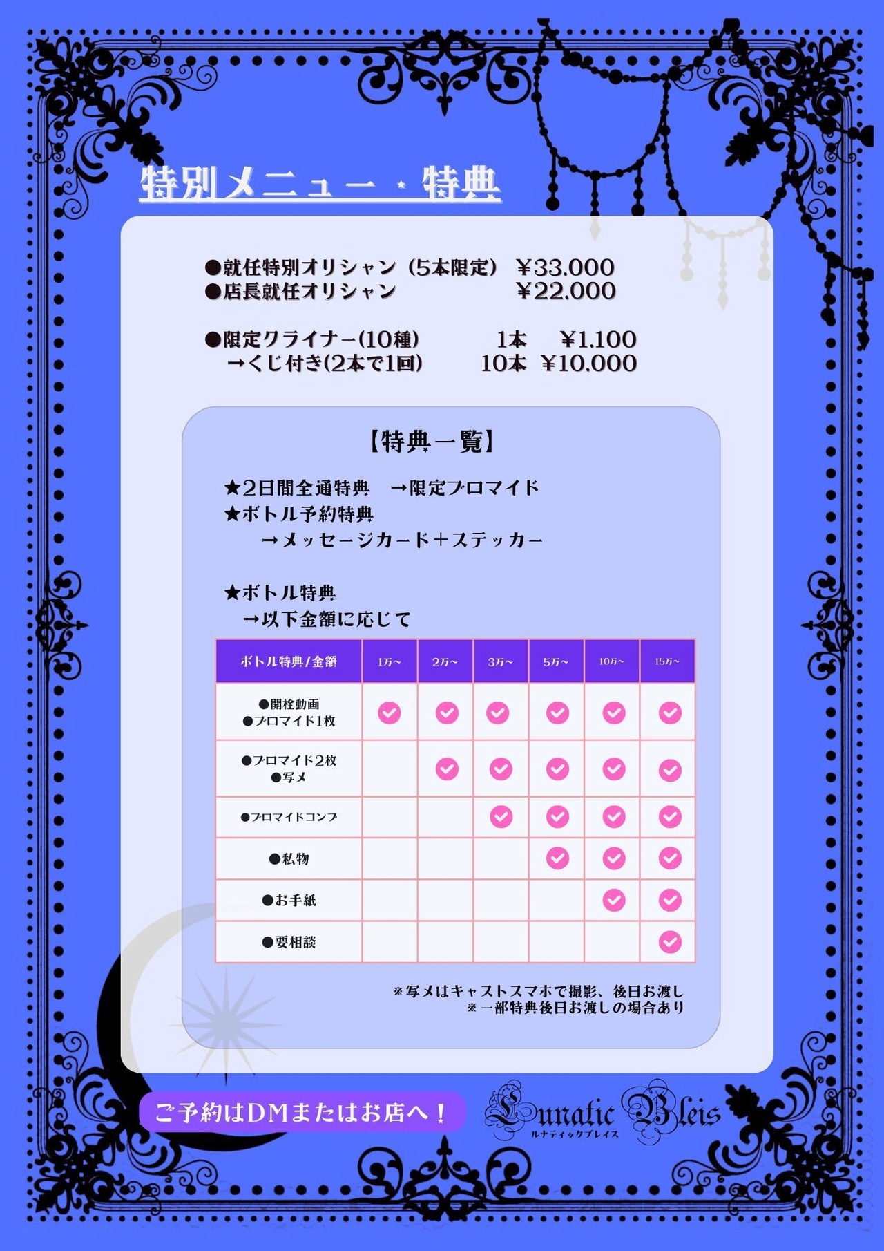 (注)スタッフの都合によりリアルタイムでのご提供ができない場合がございますのでご了承ください。